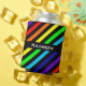 Arco-íris e listras pretas com seu nome personalizado.