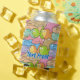 Um padrão inconstante de animações coloridas, felizes e sorridentes. Texto personalizado de ambos os lados.