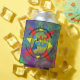 O logótipo "Art By MAS" colocado num koozy colorido.