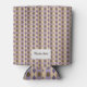 Cordas de diamantes e manchas, impressas em azul, pêssego e tons de marrom. A etiqueta de nome pode ser removida. O texto pode ser facilmente personalizado ou removido.