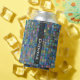 Personalizado pode resfriar coberto com pequenos azulejos glamourosos em tons de azul, verde e roxo. Há um banner de nome semitransparente vertical. O banner é preto e o texto é cinza clara ou castanho claro. O nome e a faixa podem ser facilmente personalizados ou reposicionados. Você também pode ajustar a fonte, o tamanho e a cor do texto.