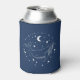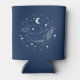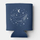 Ilustração de arte em linha de uma baleia sobre um fundo azul de estrelas e uma lua.