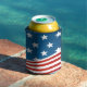 Esta lata mais fria tem uma fotografia da bandeira americana nela.