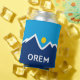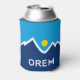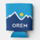 Consegue arrefecer com um design com a bandeira de Orem, Utah. Uma bandeira azul, branca e amarela com picos de montanha e o sol no centro