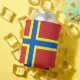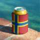 Pode arrefecer com design com uma bandeira do condado histórico de Orkney, na Escócia, Excelente-Bretanha; bandeira vermelha com cruz azul e amarela nórdica