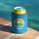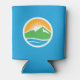 Consegue arrefecer com um design com a bandeira de Provo, Utah. Uma bandeira azul com o logotipo da Cidade do Provo no centro. O logótipo representa o lago de Utah e os picos de montanha próximos com o sol ascensão ao fundo