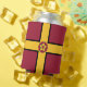 Pode arrefecer com design com uma bandeira do condado histórico de Northamptonshire, em Inglaterra, na Grã-Bretanha Excelente; bandeira marrom com uma cruz de ouro e o rosa tradicional do condado no centro