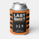 Celebrate the groom’s last shot before the knot with this black and orange striped basketball themed bachelor party can cooler. Featuring a basketball and cool basketball player silhouettes, it's a fun and sporty choice for a ballers night out or bachelor weekend. Perfect for keeping drinks cold while toasting to the groom, this can cooler adds a playful touch to the celebration. Personalize it with the groom’s name and event details for a custom keepsake!