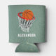 Design personalizável com uma imagem de uma bola de basquete laranja e um aro de rede com um fundo de efeito impresso para se parecer com cimento. Adicione seu nome a um presente de basquete exclusivo e personalizado. Perfeito para a pessoa que ama basquete!