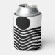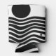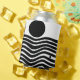 Este refrigerador tem design Bauhaus de linhas onduladas e círculos a preto num campo de branco.
