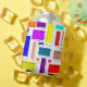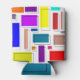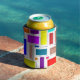Esse resfriador tem um design de retângulos Bauhaus em muitas cores com seus contornos pretos em offset.
