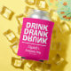 Bebida Bebida e a palavra Bebado de ponta-cabeça, esses refrigeradores de bebidas personalizados são divertidos de usar durante a celebração e os convidados a levar para casa como favoritos para festas. Mostramos um fundo rosa quente, mas você pode mudá-lo para qualquer cor.