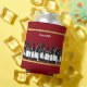 Ilustração gráfica de garrafas de cerveja pretas com nome personalizado num fundo vermelho (cor personalizada)