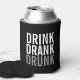 Beber Bebado | Black Chic Funny Can Cooler com a frase "Drink Drank Bebado" no estilo de letra de texto em negrito.
