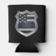 Mostre seu suporte para polícia com esta bebida koozie de estilo de escudo de linha azul fina.