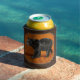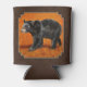 Um Urso Negro a dar um passeio através de um campo de folhagem clara e colorida de queda. Tudo sobre um fundo castanho escuro.