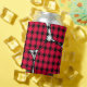 Esta lata tem um design moderno do século médio de diamantes negros sólidos traços de diamante preto dentro com bolhas cor-de-rosa sob eles, todos num campo de branco.