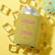 This custom wedding can cooler features a chartreuse yellow background with hot pink bold typography of couple's names and wedding date. Customizable with your names and date. For couples who want bold, modern, colorful wedding favor can coolers for reception guests.