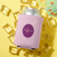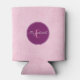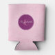 Personalize com seu monograma e nome em um círculo roxo. O fundo é cor-de-rosa com pequenas bolinhas brancas giras.