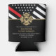 Este design apresenta uma bandeira de bombeiros com listras pretas e brancas, e uma fina faixa vermelha também. "Parabéns" e o crachá de bombeiros se senta acima de todos os detalhes da festa para o bombeiro aposentado, tenente ou festa de aposentadoria do chefe. Celebre em estilo com este excelente e partidário a favor dos seus convidados.