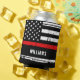 Thin Red Bottle Cooler - design de bandeira americana em cores de bandeira de bombeiro, design angustiado. Este bombeiro personalizado pode resfriar é perfeito para presentes de bombeiros, favoritos para festas de aposentadoria de bombeiros, festas de formatura de bombeiros ou para celebrar seu bombeiro favorito. Perfeito para todos os bombeiros, bombeiros e membros da família e apoiadores dos bombeiros. Personalize com o nome. COPYRIGHT © 2020 Judy Burrows, Black Dog Art - Todos Os Direitos Reservados. O Bombeiro Personalizado Da Linha Vermelha Espessa Distante Pode Resfriar