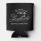 favoritos para festas excelentes! Os negros e brancos podem resfriar a palavra "Formando", o ano de aula, o nome da escola na frente e atrás. As palavras "Começa a Aventura" estão impressas no fundo. Altere a cor do resfriador com o Zazzle Edit Tools. Excelente de presente para as escolas darem! CORRESPONDENTE a itens na nossa coleção.