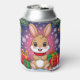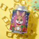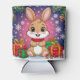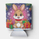Um belo coelho de desenho animado fica entre neve, ornamentos e presentes, evocando alegria de férias com cores vibrantes e um cenário festivo de inverno. Perfeito para cartões de saudação sazonais e designs de férias.