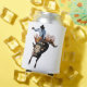 Cavaleiro-boi com torneiras a voar num bote-balde