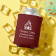 This professional realtor can cooler is custom made with your real estate company name under the modern cursive script for an open house. These customized burgundy realty business promotional items feature a house logo image for home builder or realty agent company marketing.