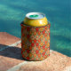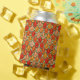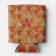 Esta lata tem um design de tulipas de deco de arte de pentágonos e trapezoides em diferentes tons de laranja.