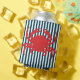 Caranguejo vermelho divertido em faixas náuticas azuis - Gráficos por Lilly Bimble