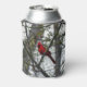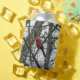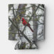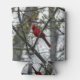 Um cardeal macho sentado na minha árvore Mimosa no início da primavera.