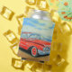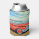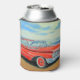 Porta-lata Carro vermelho retrógrado, pintura à beira-mar.