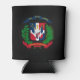 Design com emblema nacional da República Dominicana; design azul, vermelho e branco