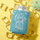 Chá de casamento pode resfriar / Modelos koozies - Roteiro elegante de inscrição e Casal Vintage Mason Jars e String Lights no fundo floral azul claro. Um Design perfeito para o seu grande dia. Todo estilo de texto, cores, tamanhos podem ser modificados para ajustado das suas necessidades!