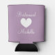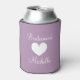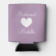 Casamento personalizado pode resfriar para madrinhas. Lavanda lilás, roxo e casamentos brancos, costuma resfriar com coração bonito. Design clássico com nome ou letras monográficas. Bonita design de símbolo de amor. Faça um para a noiva da equipe, dama de honra, madrinha de casamento, noiva, dama de honra, mãe da noiva etc. Crie seu favorito de casamento/lembrança confortável para os convidados da sua festa. Design do titular da bebida temática romântica. Perfeito para bebidas alcoólicas como cerveja. Também disponível para garrafas. Escrita elegante. Cooler personalizado para casamento chic, chá de panela rico, festa de solteira engraçada etc.