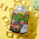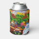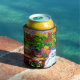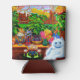 Can Cooler com a pintura de animais de Louis Wain Master of Cat College (1860-1939). Um gato branco pensativo com olhos azuis impressionantes senta-se pesadamente ao lado de uma variedade vibrante de flores bonitas. A majestosa faculdade de gatos venta no fundo sob um céu rosa e azul. Um presente maravilhoso para amantes de gatos e arte inglesa.