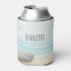 Freseiros personalizados com uma bela imagem rústica. Cores sutis de azul claro, marrom arenoso e branco suave. Uma cena de praia com um barco na praia com uma rede de pesca pendurada ao lado. Um olhar elegante.