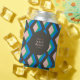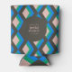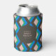 Este cooler personalizado para latas é um favor de festa elegante e funcional para chás de noiva, despedidas de solteira ou eventos comemorativos. Com um padrão geométrico ousado em tons vibrantes de azul, verde e rosa suave contra um fundo escuro, ele adiciona um toque moderno e divertido a qualquer encontro.