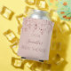 Um refrigerador para um Chá de panela giro e glamouroso. Um fundo rosa dourado com estrelas. O nome é escrito em cor rosa escura de ouro com um estilo moderno, escrito à mão. Modelo de nome, data, texto.
