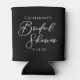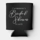 This elegant black bridal shower can cooler party favor features beautiful white typography for an evening party in the winter. Minimalist script is a modern trend for a contemporary bride.