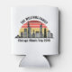Personalized Chicago Illinois vacation can cooler with a silhouette of the city skyline in front of a cool sunset. Cool trip keepsake souvenir for a family trip.