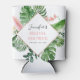 Tropical Palmas Flores Florais Banho de Noiva Festa Can Cooler - inclui bela e elegante tipografia de script com modernas flores cor-de-rosa desbotadas botânicas e folhagens tropicais havaianas para a celebração especial da Noiva