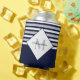 Porta-lata Cinza Azul Marinho Moderno Náutico Grelha Monogram