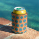 Este resfriador tem um design moderno do século médio de círculos laranja abertos com círculos teóricos sólidos atravessando o padrão com linhas verticais lacrimogêneas e linhas horizontais laranja.