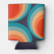 Abstrato ilustração de círculos coloridos com estilo retrorreflector em cores bege, laranja pastel, laranja e turquesa em fundo azul marinho.
