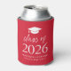 Dê aos seus convidados de formatura um favor de festa que eles usarão com esta moderna classe de graduação de 2025 pode ser mais legal! O personalizado pode resfriar um boné de formatura na parte superior do design com "Classe de 2025" exibido em letras brancas em negrito em um plano de fundo vermelho. Personalize a lata vermelha com o nome do formando, a escola e o ano de graduação. O design repete atrás. Esse favor personalizado de festa de formatura é perfeito para segundos graus e formandos.