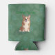 Trabalho de arte de um lindo córrego sentado sobre um fundo verde com patas coradas. Ideal para amantes de cães de todas as idades.