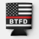 Thin Red Can Cooler - design americano de bandeira nos Estados Unidos em cores de Sinalizador de Bombeiro. Este corpo de bombeiros personalizado pode resfriar é perfeito para presentes de bombeiros, favoritos para festas de bombeiros e para entregar em promocionais de bombeiros ou eventos de suporte. Adquira essa linha vermelha fina pode resfriar grandes quantidades para os bombeiros e resgate de incêndios. Personalize com as iniciais do departamento. COPYRIGHT © 2020 Judy Burrows, Black Dog Art - Todos Os Direitos Reservados. Bombeiros Personalizados - Linha Vermelha Fina Pode Resfriar