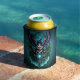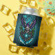 Coruja com elementos mágicos. A design apresenta uma coruja impressionante e estilizada com suas asas espalhadas por toda parte, projetada em uma paleta de cores vibrantes de roxo, azul e branco. A coruja expele uma presença majestosa, enquanto seus olhos amarelos piercing olham diretamente para o espectador, criando um senso de intensidade e mistério. Padrões insípidos e giratórios se desdobram em torno da coruja, lembrando símbolos mágicos, dando à imagem geral uma aura mística.